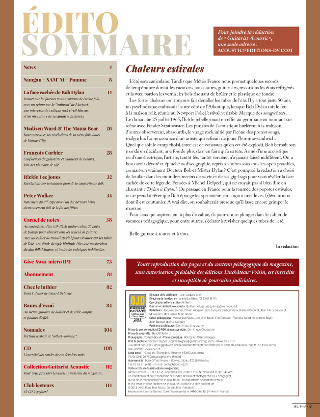 PRéSENTATIONS - GUITARIST ACOUSTIC SOMMAIRE DU NUMéRO 49
