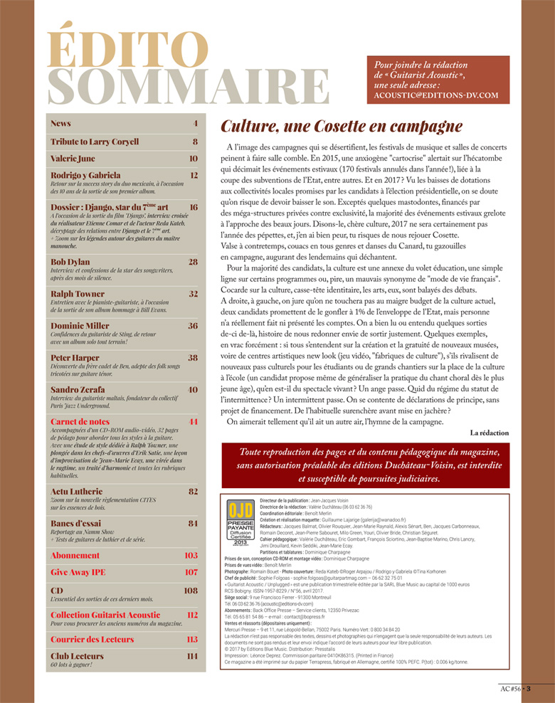 TOUS LES ARTICLES - GUITARIST ACOUSTIC SOMMAIRE DU NUMéRO 56
