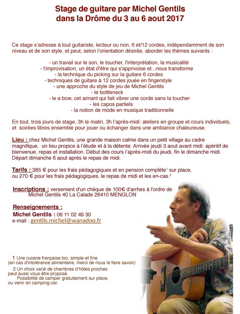 STAGE - Du 3 au 6 août 2017, Stage de guitare avec Michel Gentils