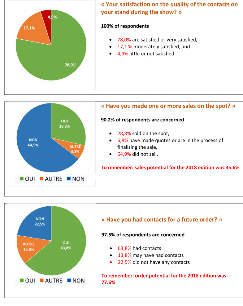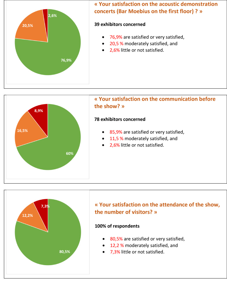 Getting 96.4% of answers to the satisfaction survey from the exhibitors took a little time but I am stubborn and that because it seems to me more than important to have a return from exhibitors as complete as possible in order to define the strengths and weaknesses of an event, so I insisted and after 4 reminders, here is the results of the survey.