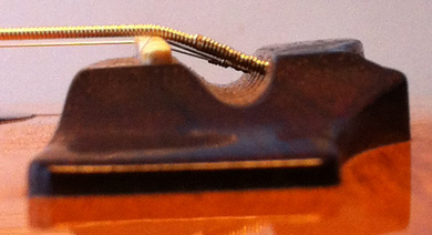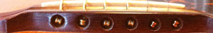 Sur la photo ci-contre, les cordes sont bloquées à l'arrière du chevalet et ne traversent pas la table.