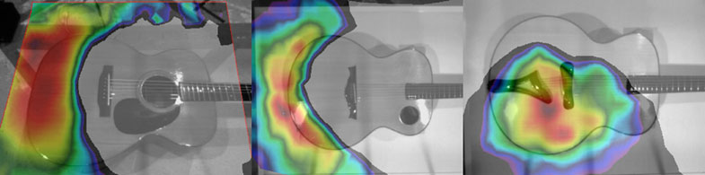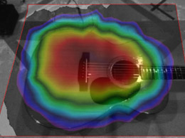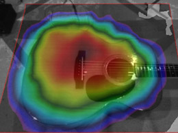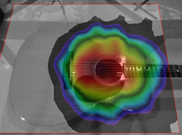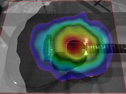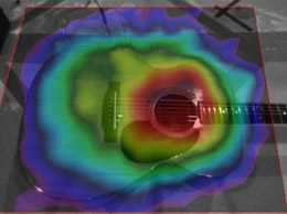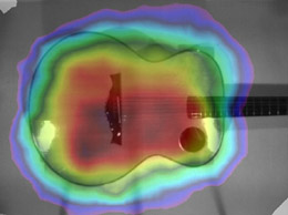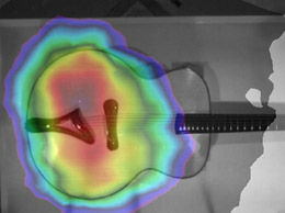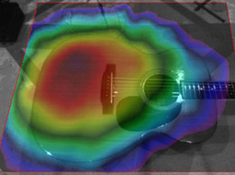 Aussi, pour les deux guitares modernes, on note qu’à 500 Hz le patron du son émis change et ressemble plus à un dipôle alors que la flat top traditionnelle ne présente pas ce changement.