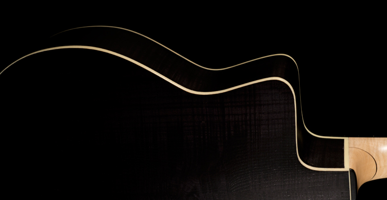 Le manche en érable et le pickguard blanc contrastent à merveille avec les tons "ébène" qui dominent.
