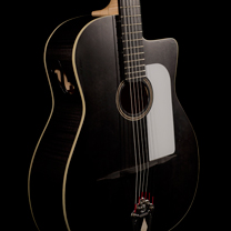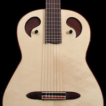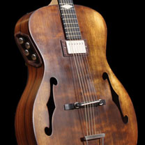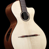 Bien qu'elle se joue acoustique en ouvrant l'event sur éclisse, ce n'est pas son principal atout. C'est le côté guitare électrique son intérêt, avec un micro Benedetti type "cotton club", choisi pour sa chaleur, ses graves et pouvant être mixé avec un piezo au sillet pour donner une sonorité plus cristalline.