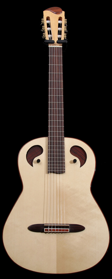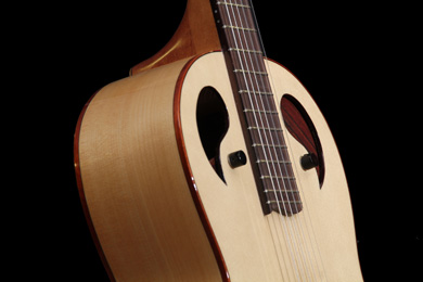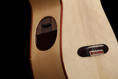 En revanche, celle présente sur éclisse apporte énormément de fréquence grave et de puissance sonore autant pour le joueur que les auditeurs, et qu'il n'y a pas de perte en qualité acoustique. Il m'a été très difficile de réaliser ces systèmes de trappe, mais comme je le dis:« en lutherie il n'y a aucune règle, que des contraintes. »."