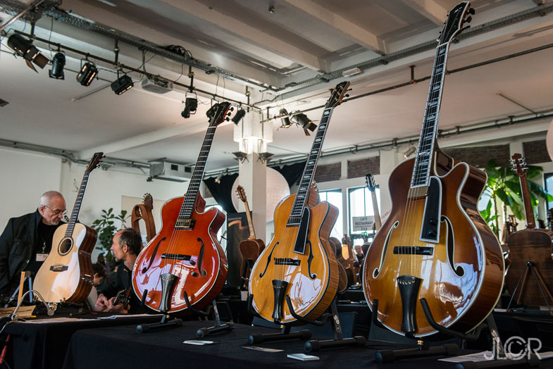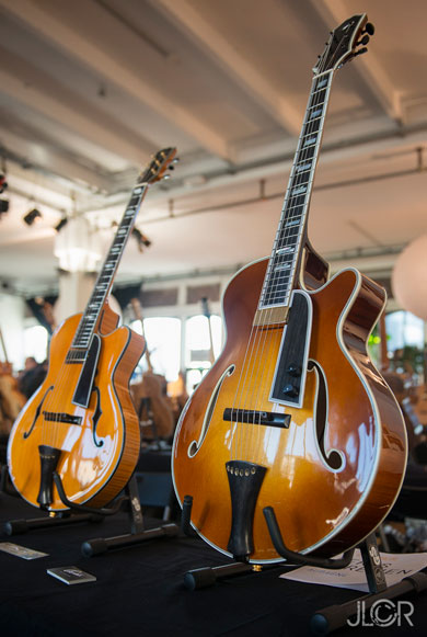 Si la guitare flat-top dominait ce salon, la guitare arch-top avait cependant d'excellents représentants comme le jeune luthier Aurélien Péras.