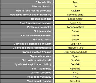 Le modèle présenté içi représente le "presque" haut de gamme des guitares Boucher. En fait, il n'y a pas vraiment de bas de gamme car tous les modèles sont tout massif avec pour la table, l'épinette rouge ou épicéa des Adirondacks, le roi des épicéas. La différence est le degré de qualité pour la table et bien sûr, la décoration.