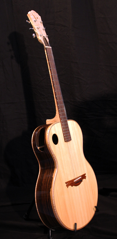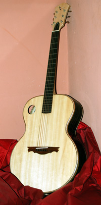 Benoît Lavoie est spécialisé en guitares Flat Top et Arch top principalement acoustiquesqu'il propose soit en version traditionnelle, soit moderne. Nous vous présentons aujourd'hui un modèle flat top moderne, 16 pouces, issu des recherches qu'entreprend Benoît depuis plusieurs années.