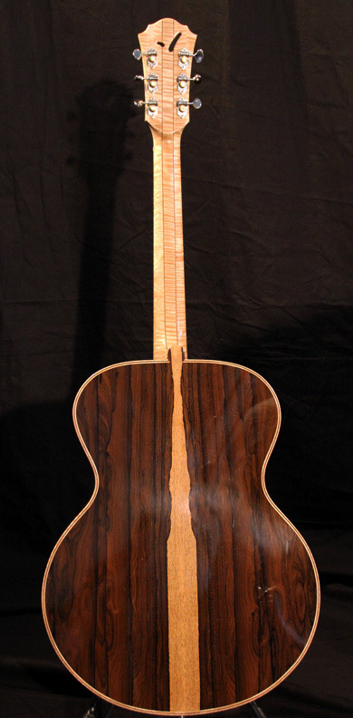 On retrouve de l'érable ondé pour le manche et la fileterie. Touche et chevalet sont en palissandre bolivien.