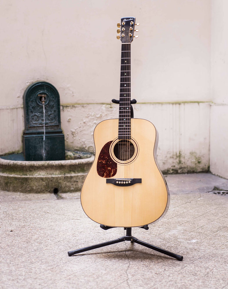 Etant gaucher, il n'est pas toujours évident de trouver des instruments m'étant adaptés. Avec la complicité de Daniel du magasin « Le Gaucher » à Pigalle, qui a eu l'amabilité et la gentillesse de me confier trois instruments, à savoir une Boucher, une Guild et une Furch (Stonebridge sur me marché américain) je suis en mesure de rédiger les bancs d'essais de ces trois instruments.