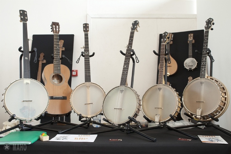 Belle histoire que celle de Bruno Torres, rare luthier à s'être spécialiser dans le banjo. Comme vous le voyez sur son stand, toutes les sortes de banjos sont proposées par Bruno.