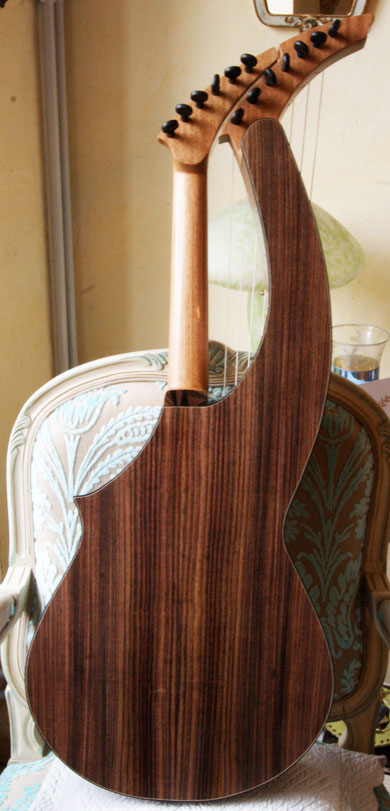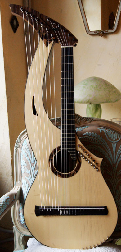 Cette étroite collaboration avec Cédric Verglas a commencé à une époque où il n'était pas encore professionnel puisqu'il m'avait confié sa première guitare harpe. Lorsque j'ai eu ce nouveau projet d'instrument, j'ai immédiatement pensé à lui puisque je savais qu'il avait produit des instruments très réussis telle la guitare harpe de mon ami Yaouen.