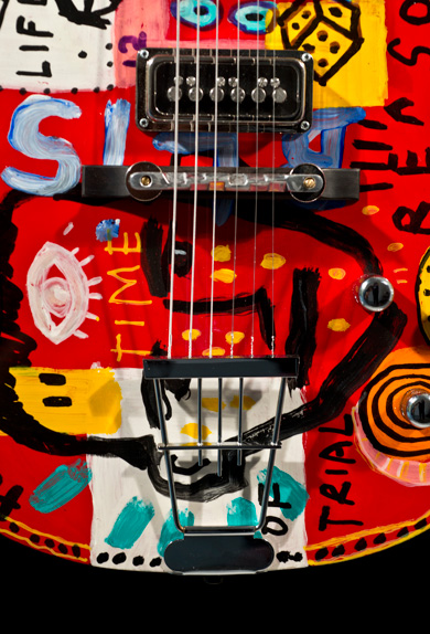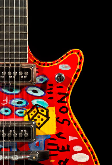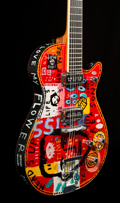 Basée sur une Gretsch Duojet et équipée d'un micro HepCat, nous sommes donc ici sur une véritable guitare haut de gamme doublée d'une oeuvre d'art !