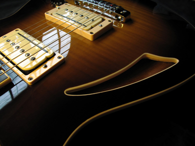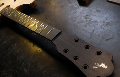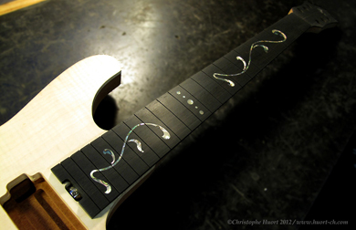 Les photos ci-dessus sont celles de la thinline set-neck. Vous trouverez des photos d'inscrustations sur d'autres modèles Liberty ci-dessous.