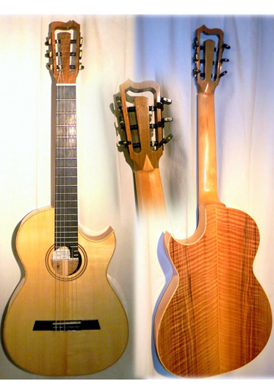 "Ayant étudié à l'école de lutherie de Mittenwald avant de travailler pour divers entreprises de lutherie, Il crée son propre atelier en 1993 et assume avec imagination ses gouts éclectiques : Guitares flamencas, folk, électro-acoustiques, électriques, mandolines...