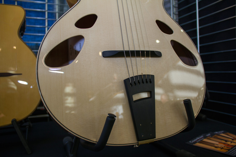 Modèle CR 30N Table : Epicéa du Jura; Fond / Eclisses : Noyer, Manche : Acajou du Honduras; Touche : Ebène; Chevalet : Ebène; Fileterie de caisse : Erable ondé; Placage de tête : Ebène; Repères de touche : Nacre; Mécaniques : Rubner all black; Cordier : Ebène; Vernis : Cellulosique brillant; Micro : Benedetti Mini Prix : 2700 € RETOUR A L'INDEX DES VIDEOS Vidéos et Photos : Kevin Cintas - le 09 novembre 2015 - Le site de Clément Rossat - Le site du festival d'Issoudun