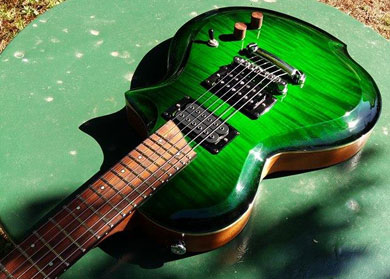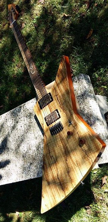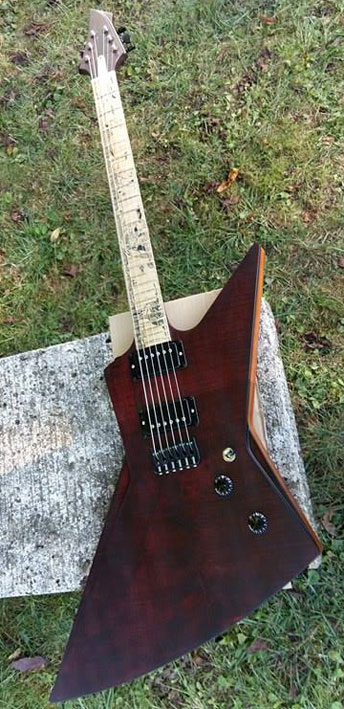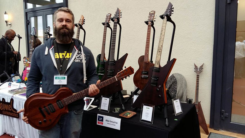 Je découvre ce luthier installé à Dhuisy (77) et spécialisé dans la fabrication de guitares électriques assez typées métal. Pour sa première exposition à Berlin, Alex exposait les 6 modèles en photos ci-dessous.
