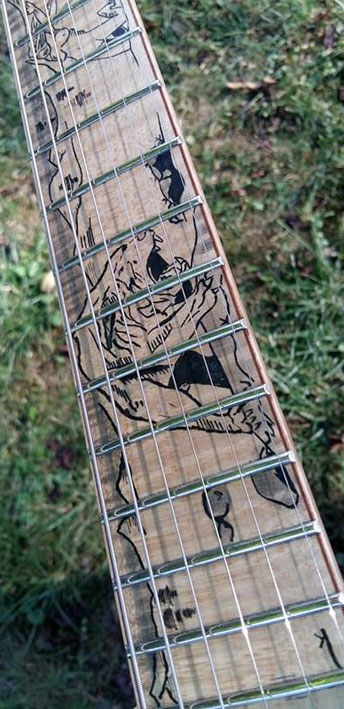 - Touche érable ondé + inlay estampe gravée 'la bête du Gévaudan'