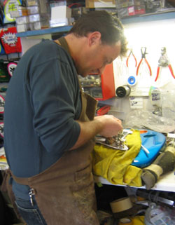 les guitares des clients, un monsieur qui s'appelle Denis Bouvier