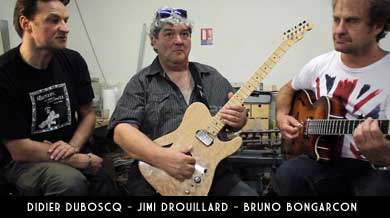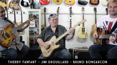 Didier Duboscq aime bien faire les choses entre amis et pour nous présenter son tout dernier modèle jazz, il a initié une jam spéciale entre trois de ses bons amis musiciens : le bassiste Thierry Fanfant et sa basse Did 5 cordes, le guitariste Jimi Drouillard et son modèle Did Baritone thinline Tele et enfin Bruno Bongarçon avec entre les mains le dit modèle Gwadajazz Alain Winter Custom.