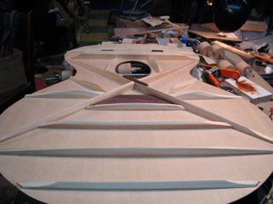 Son barrage est un hybride entre le 'X' américain et le barrage transverse à l' oriental (oud, saz, sitar). Avec 17 pouces de hanches, une construction parabolique ultra légère, une attache de manche combinant tenon/mortaise et le fameux 'pied' espagnol ; cette fabrication contemporaine de Thierry André est garantie à vie à l'acheteur initial.Sakura représente sans contredit un magnifique investissement. Une oeuvre inclassable.