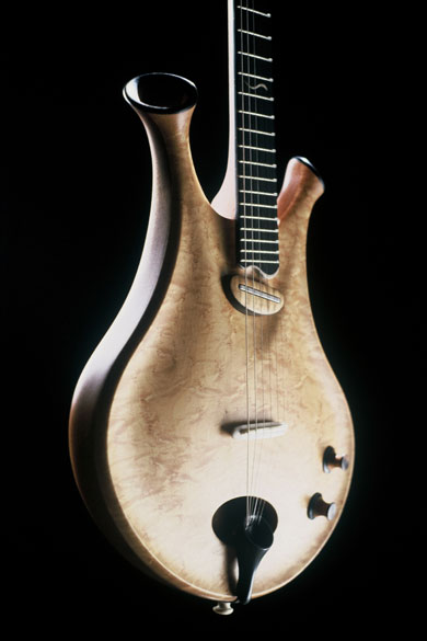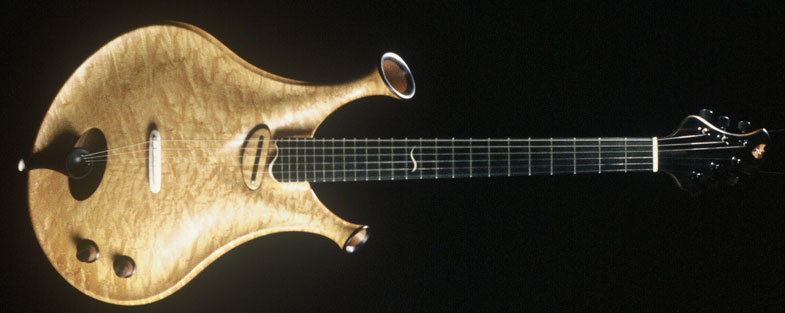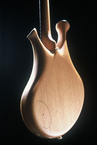 • Zyra est une guitare electrique chambrée, l'air sort des deux'cornets' ainsi que sous le cordier.