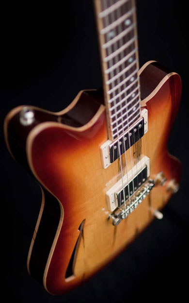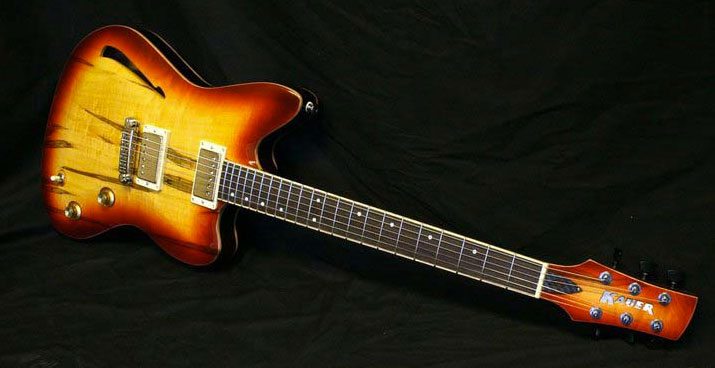 L'Argonaut est le modèle haut de gamme hollowbody de Doug Kauer. Il dispose d'une table et d'un dos en érable entièrement sculptés (interne et externe). Manche en Cèdre espagnol.