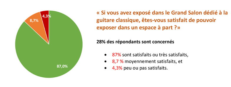 Obtenir 96,4% de réponses à l'enquête de satisfaction auprès des exposants de l'édition 2018 du salon de la belle guitare a pris un peu de temps mais vu que je suis du genre têtu et qu'il me semble capital d'avoir un retour le plus complet possible des exposants afin de définir les forces et faiblesses d'un événement, j'ai insisté et après 4 relances, voici ci-dessous la synthèse des réponses à l'enquête.