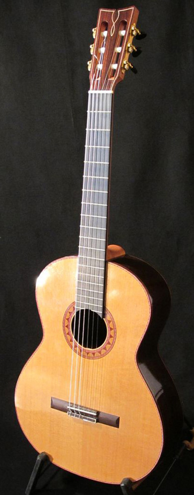 " Voici donc mes deux dernières guitares de concert, qui, sur le principe, ne diffèrent que par la nature de leur table : épicéa pour l’une et cèdre rouge pour l’autre.