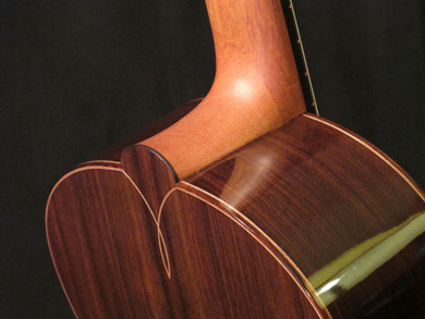 Pour le volume sonore, la cèdre parait un peu au dessus, surtout quand on est le musicien, ça sort tout seul (surtout dans les aigus, elle est très flatteuse). En tant qu’auditeur la différence me parait moins marquée. Il faut dire aussi que c’est également une caractéristique du cèdre, que d’être de suite "mature". Cette différence sera sans doute moins nette dans quelque temps, quand l’épicéa aura été joué.
