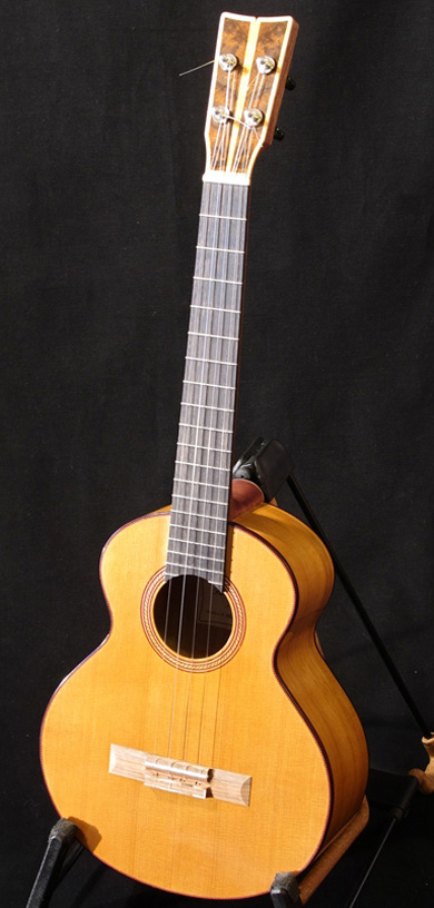 Le mot du luthier : "Constatant un certain engouement pour cet instrument (qui du point de vue de l'organologie, est très voisin de la guitare classique), je me suis essayé à en créer quelques uns.