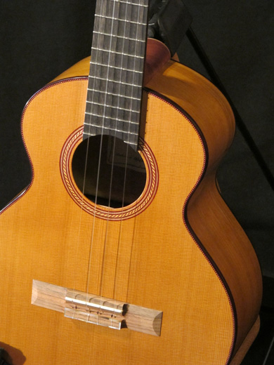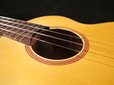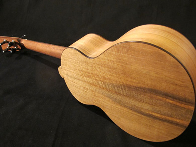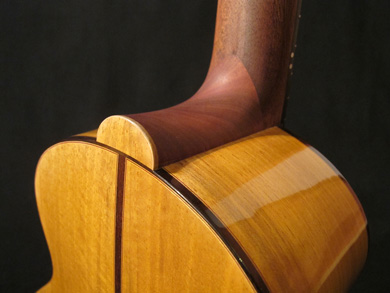 J'ai donc dessiné un instrument qui me plaisait, avec des courbes bien prononcées, en y mettant pour la partie technique, tout ce que je pense avoir compris de la guitare classique. La fabrication a d'ailleurs été menée avec autant de soin que celui que j'apporte à ces dernières, je les considère comme des instruments de concert.