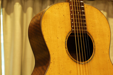 Un vrai coup de coeur pour le modèle 00 de François Vendramini tout fraichement sorti de l'atelier. Une guitare qui va très bientôt faire parler d'elle pour son étonnante projection, son poids plume (moins d'1Kg3), sa finition huilée et surtout pour son impressionnante dynamique. Une guitare qui assume les plus douces caresses comme les plus violentes étreintes.