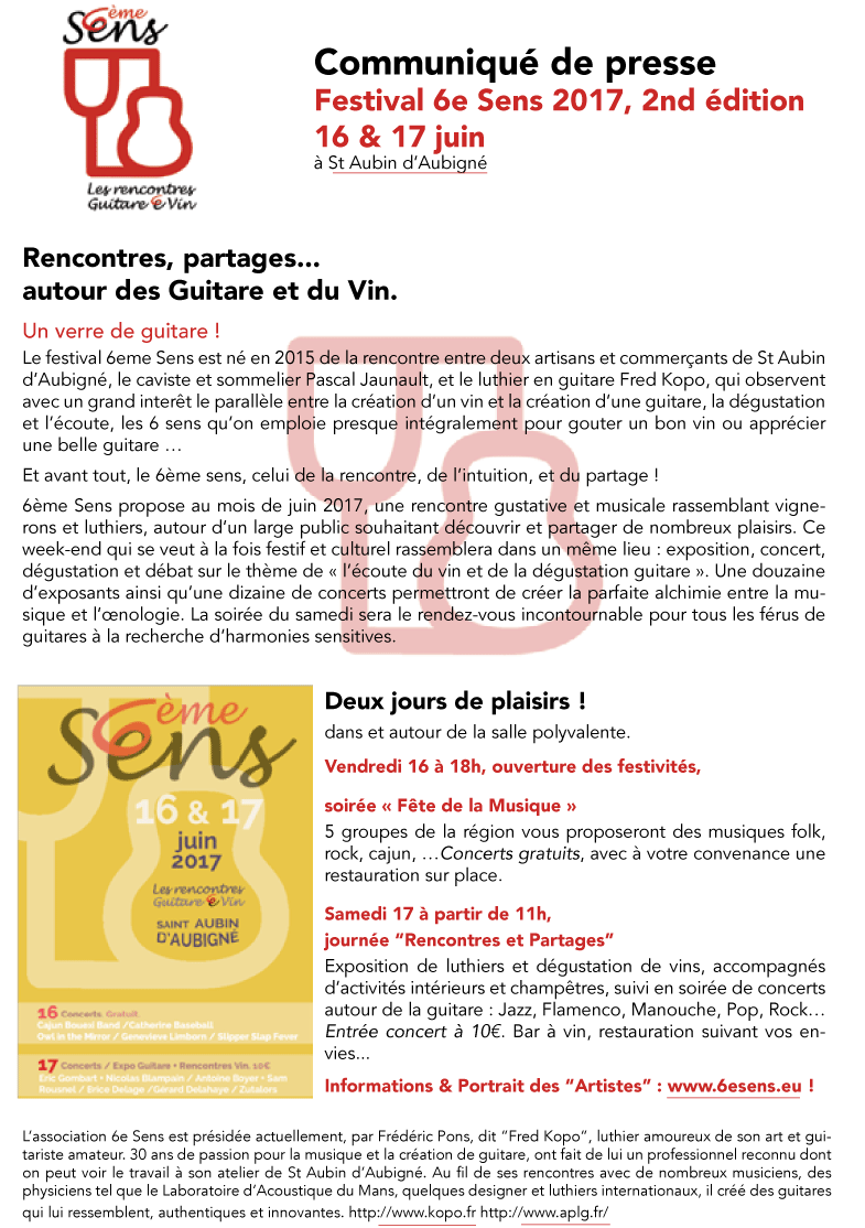 • 2ème édition du festival 6ème Guitare&Vin les 16 et 17 juin.