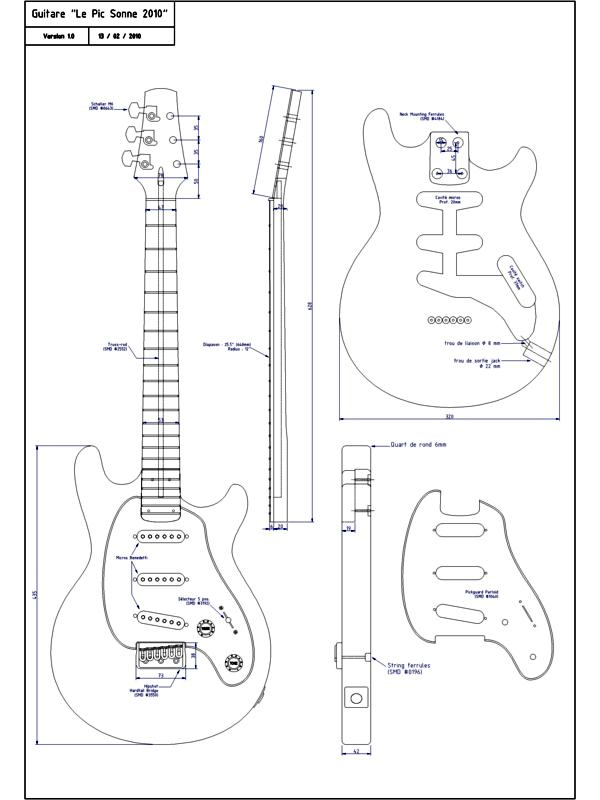 Les gabarits de défonce et de contour de corps ont été réalisés par Lionel Cau d'après les plans de Christophe Grellier. Puis réalisée dans une pièce d'aulne.