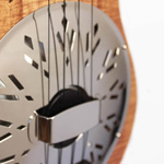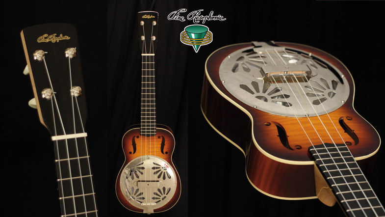 Le second est un Ukulele Fine Resophonic moderne, corps en bois (Koa laminé) et amplifié par un cône biscuit, le même cône que celui installé dans le National.