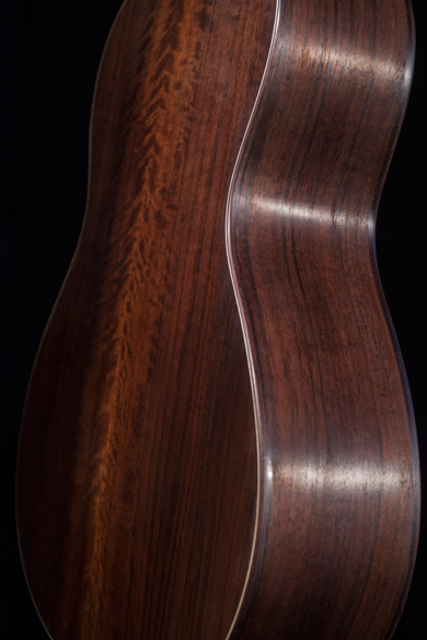 L'utilisation d'essences locales s'impose de plus en plus chez nos artisans français et on ne peut que s'en féliciter. Les guitaristes prendront conscience, même si cela doit prendre du temps, que les essences tropicales ne sont pas les seules à pouvoir être utilisées, tant pour leurs qualités mécaniques, qu'esthétiques. François fait donc partie de ces luthiers qui cherchent à privilégier des bois endogènes.