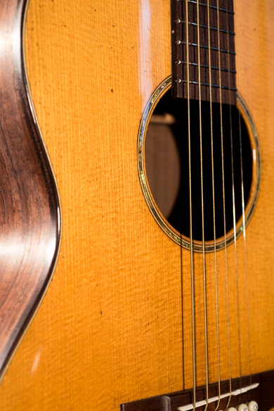 Nous sommes ici en présence d'une guitare dont le volume de caisse impose une tessiture qui lui est propre et nous renvoie tout de suite au blues et au folk. Cependant, on retrouve dans cette 00 l'essence même d'une excellente guitare folk que l'on pourra jouer aux doigts comme au médiator. Précise, équilibrée et dotée d'une bonne projection, elle saura se révéler polyvalente avec un timbre très personnel et un peu roots. Ses points d'excellence sont le rebond et la dynamique. Cette guitare réagit au doigt et à l'oeil et sera d'une grande source d'inspiration pour le musicien. C'est d'ailleurs cette guitare qui m'a inspiré les accords du premier extrait de la vidéo ci-dessus.