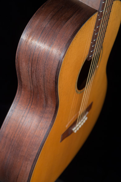 Une folk type Martin, 00 avec une table en épicéa, fond/éclisses/manche en noyer français, touche et chevalet en palissandre,