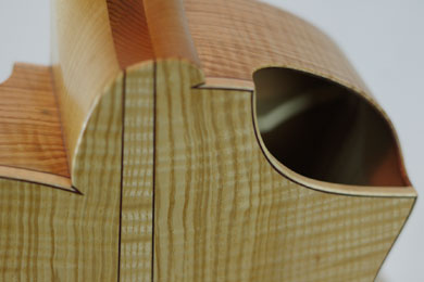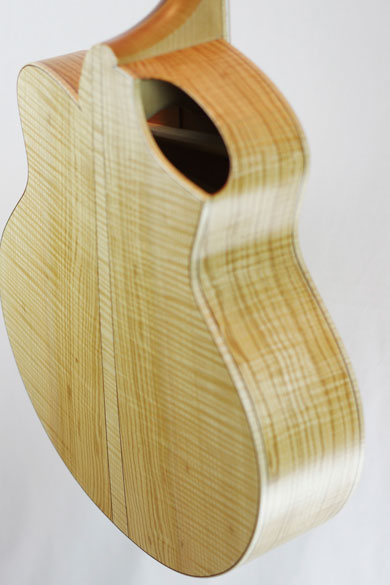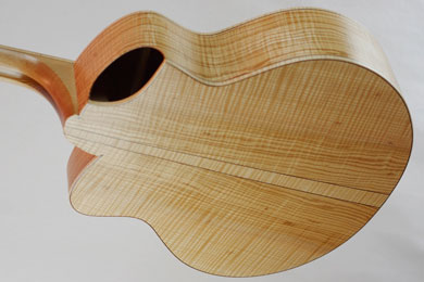 Le mariage entre le cèdre et le frêne est ici très surprenant car rare pour une acoustique. Le résultat est bluffant et plus que convaincant dans la texture sonore de l'instrument.