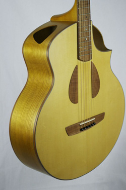Table en épicéa, du frêne pour le corps et les éclisses, du tilleul pour le manche, du cèdre pour les filets, et du cormier pour la touche!