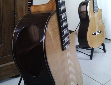 Je présenterai plus longuement ma rencontre avec ce grand luthier de la deuxième génération qui a décidé, après avoir pris sa retraite en 2007, de se réinstaller cette année. Cela fera l'objet d'un portrait dans mon prochain article sur les luthiers français participants au Salon de guitare de Montréal au mois de juillet 2011.
