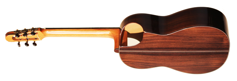 Les deux modèles de concert que je vous présente sont en palissandre indien massif pour le dos et les éclisses et adoptent la structure numéro 3 de la table des modèles d'études testés au mois de mars où les trois barres centrales ont été rompues.