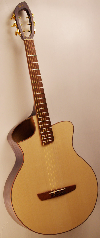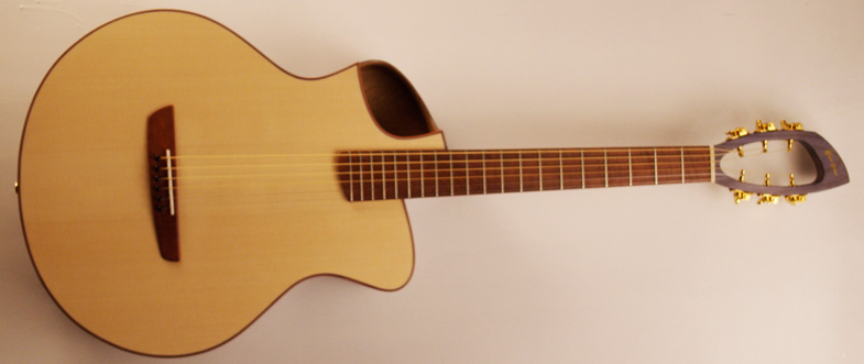 a donné naissance à un modèle à cordes acier dont "le moteur", la table d'harmonie a été réalisée par Gérard Audirac et mis en oeuvre sur le concept du dernier modèle en date de Fred Kopo, la Ouessant Blast, dont vous pouvez voir ici le premier modèle à cordes acier et une déclinaison à cordes nylon.