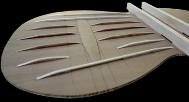 Or le dessin de cette guitare n'est pas une fn en soi. Il est le fruit d'une vraie réflexion sur l'acoustique et le son. Je n'entrerai pas dans les détails, car Gérard Audirac est le plus habilité à parler de son projet sonore. Mais je peux dire que la disparition de la rosace a d'énormes conséquences sur les qualités vibratoires de la table. L'architecture de l'instrument peut donc être totalement repensée, pour le chevalet comme pour le barrage.