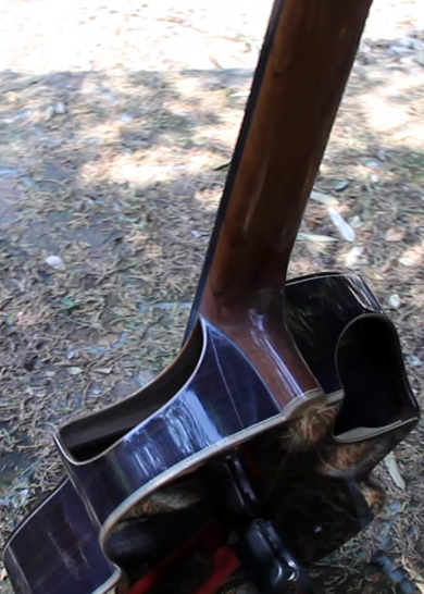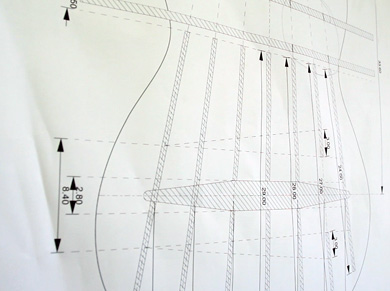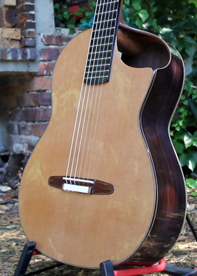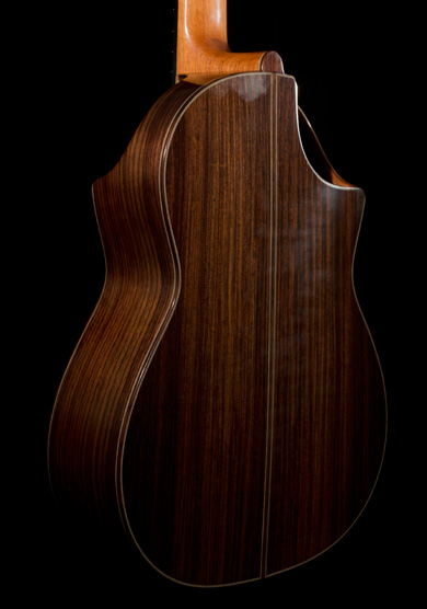 - Composite avec une âme en Nomex prise en sandwich par deux peaux bois (combinaisons variables entre épicéa et cèdre). Dos et des éclisses en palissandre indien massif.