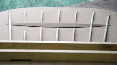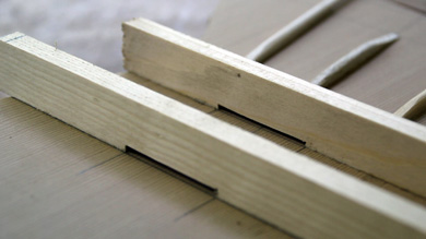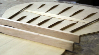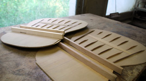 4 - Les sept barres en éventails de la table, les traverses du fond et de la table, le renfort du chevalet sont dorénavant en cèdre.