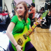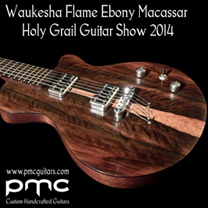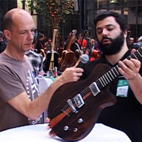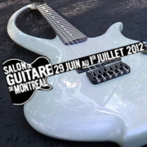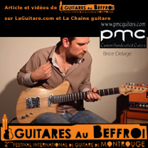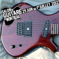 Ci-contre, Pierre-Marie Châteauneuf avec son modèle Mamba au internationales de la guitare 2012 (Photo de Luc Jennepin).