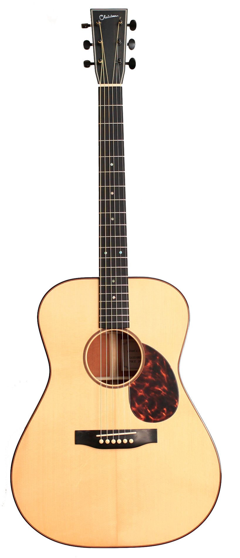Une forme mixte OM / dreadnought a donc été décidée par les frères Chatelier. Cela nous rappelle le modèle Martin M ou 0000 (ici à droite) avec cependant des hanches beaucoup moins prononcées. Ce modèle M de chez Martin a pour particularité d'avoir une caisse plus profonde qu'une OM.