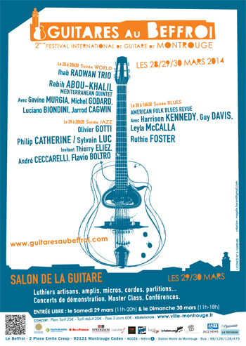 Toute l'équipe de Guitares au Beffroi est mobilisée depuis plusieurs mois pour préparer la deuxième édition du festival international de guitare de Montrouge qui se tiendra du 28 au 29 mars avec une programmation qui relève le défi de devenir un festival incontournable en France.